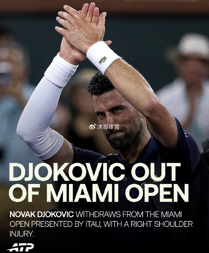 38岁德约科维奇因右肩伤势退出迈阿密大师赛,世界第三排名遇严峻挑战