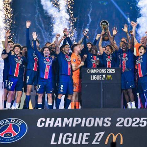 周六晚,法甲上演第34轮大结局。已提前锁定冠亚军的巴黎和马赛双双获胜。巴黎主场3比1逆转击败欧塞尔,克瓦拉茨赫利亚下半场梅开二度,队长马尔基尼奥斯破门。比赛结束后,王子公园球场进行了冠军颁奖仪式,马尔基尼奥斯第一个举起了本赛季全新设计的法甲冠军奖杯。