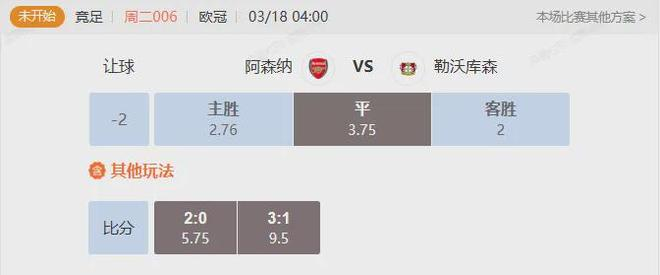 竞足 周二006 欧冠阿森纳VS勒沃库森