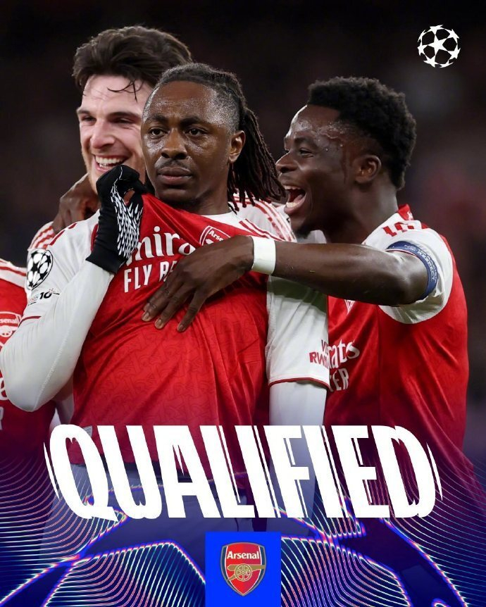 首回合客场绝平勒沃库森后,阿森纳回到主场2-0完胜,成为这个比赛日英超唯一晋级的球队。