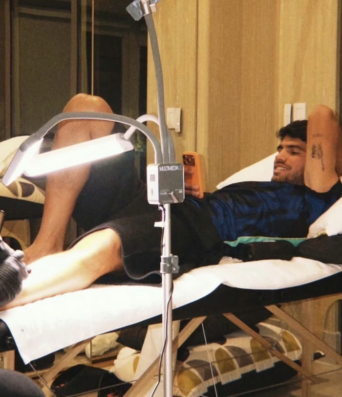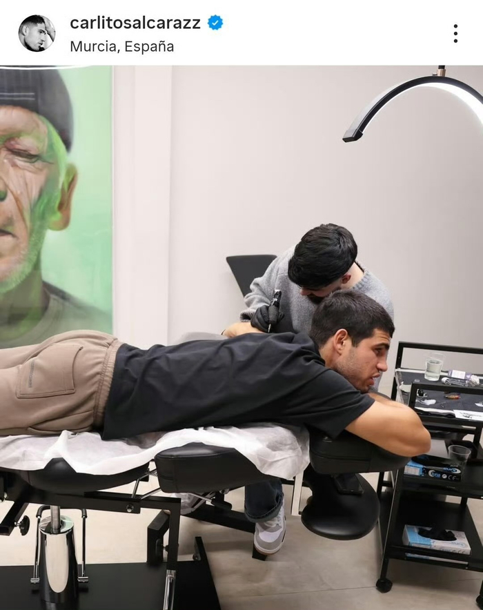 面对教练的“威胁”和父母的担忧,阿尔卡拉斯其实早有对策。此前在接受采访时他就曾安抚过家人,表示自己非常克制:“不,完全不会(纹在脸上)。我选择的都是很谨慎的位置,不会纹在脸上或大腿中间之类的。而且都是相对较小的、中等尺寸的纹身。所以这并不会亮起什么‘红灯’,一切都在掌控之中。”