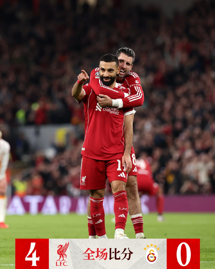 4-0,总比分4-1,逆转晋级。比分很利物浦,过程更利物浦。32脚射门,16脚射正,5.02的预期进球值,对手全场4脚射门0射正。这不是一场胜利,是一次宣告。