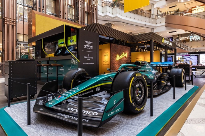 瑞士高级制表品牌百年灵于上海新世界新丸中心打造了“F1驭时赛道”限时概念空间。作为阿斯顿·马丁及阿斯顿·马丁F1车队官方时计合作伙伴,百年灵将限时空间化身为一个沉浸式体验之地。整体设计深度融合了百年灵标志性的工业阁楼风格与赛车运动的美学,以其特色的复古砖墙为背景、黑色钢结构为框架,主色调则巧妙融合了品牌标志性百年灵黄与阿斯顿·马丁的经典赛车绿,视觉碰撞间尽显摩登复古的竞速格调。为了让参观者身临其境,百年灵还在现场设置多项互动装置,卡莱拉赛车游戏可体验加速、过弯与冲刺的驾驶操控感,同时坐进虚拟影像影棚的赛车座椅,即可由AI生成专属车手形象。