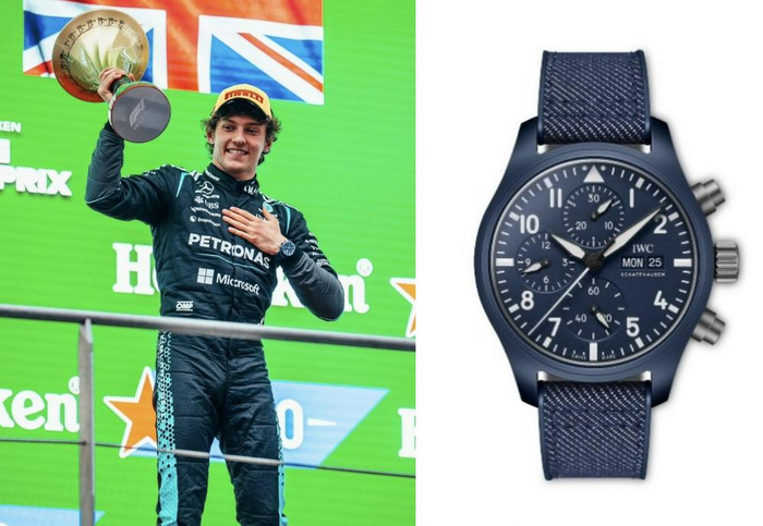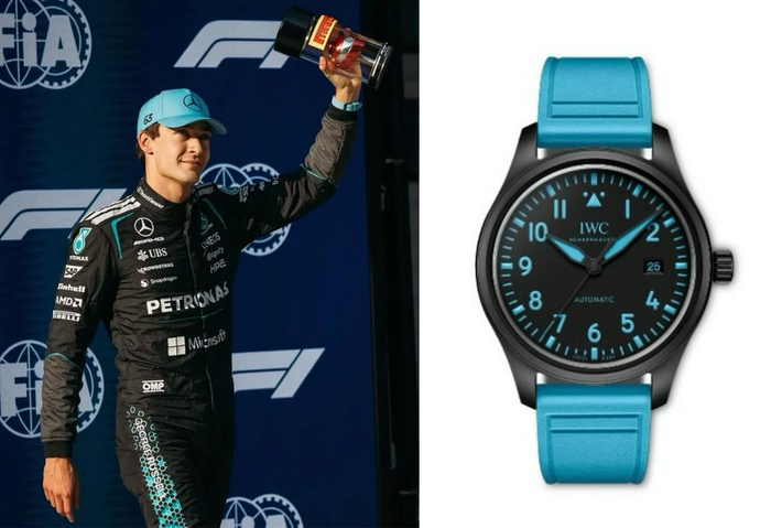 车手乔治·拉塞尔佩戴IWC万国表飞行员系列自动腕表41乔治·拉塞尔特别版(左),IWC万国表飞行员系列自动腕表41乔治·拉塞尔特别版(右)