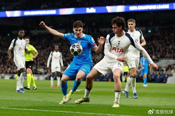 此役主场迎战马竞,热刺虽然首回合大比分落后但依旧主力尽出。开场30分钟,特尔传中,穆阿尼无人盯防情况下头球破门,热刺1-0先声夺人。易边再战第47分钟,卢克曼反击中送出助攻,阿尔瓦雷斯转身爆射破门,马竞1-1扳平比分。5分钟后,哈维西蒙斯兜射破门帮助热刺再度反超,随后阿尔瓦雷斯角球助攻汉茨科前点头球破门再度追平。比赛进行到第90分钟,哈维西蒙斯成功造点并亲自主罚命中,热刺最终3-2获胜,但总比分5-7依然出局。