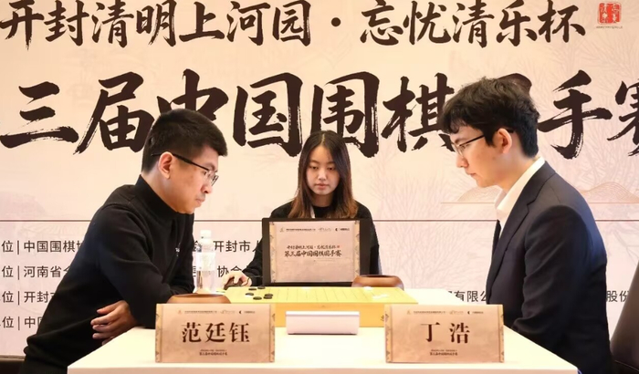 中国围棋国手赛决赛第一局,挑战者范廷钰痛失好局,半目惜败,卫冕冠军丁浩三连霸在望。