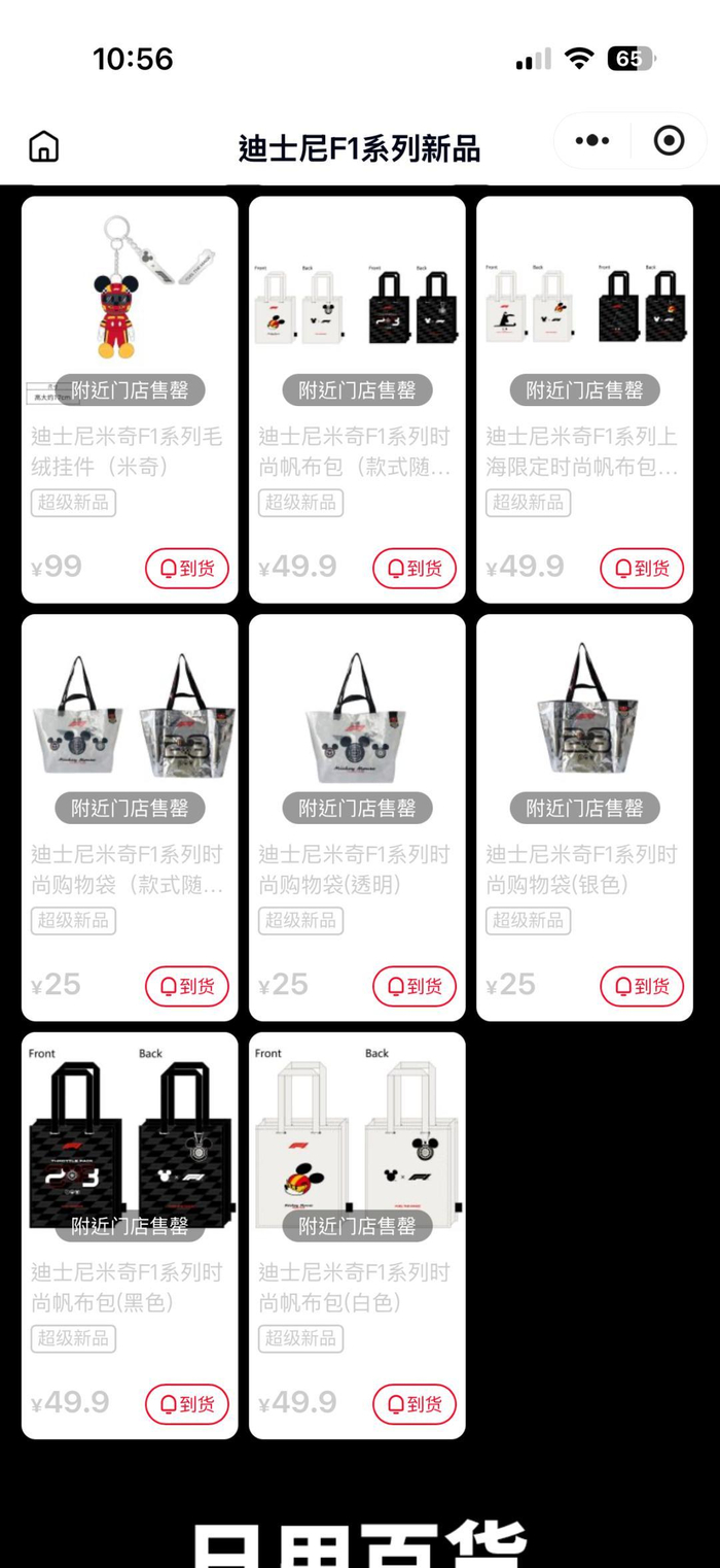 名创优品推出了米奇系列的盲盒、帆布袋等产品,将赛车元素与经典 IP 结合。这一大众化的联名,瞄准的更多是非边缘的车迷群体以及 IP 潮玩群体。