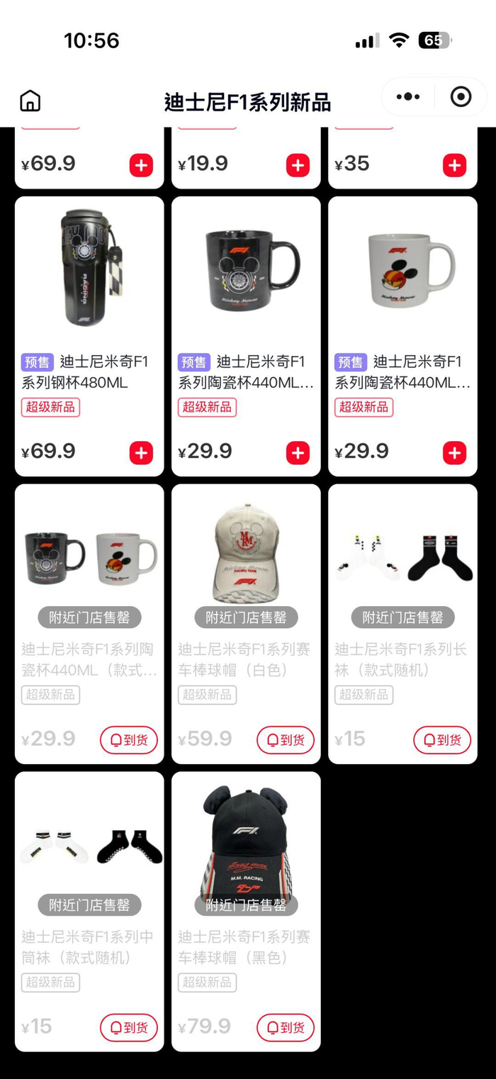 名创优品则是借与迪士尼的合作蹭上了 F1 这趟热度。早在去年,迪士尼就预热了米奇与 F1 的全球合作;赛前,正式官宣了与名创优品、优衣库、Gentle Monster 等品牌的三方联名。