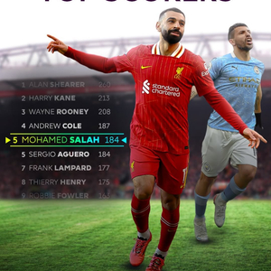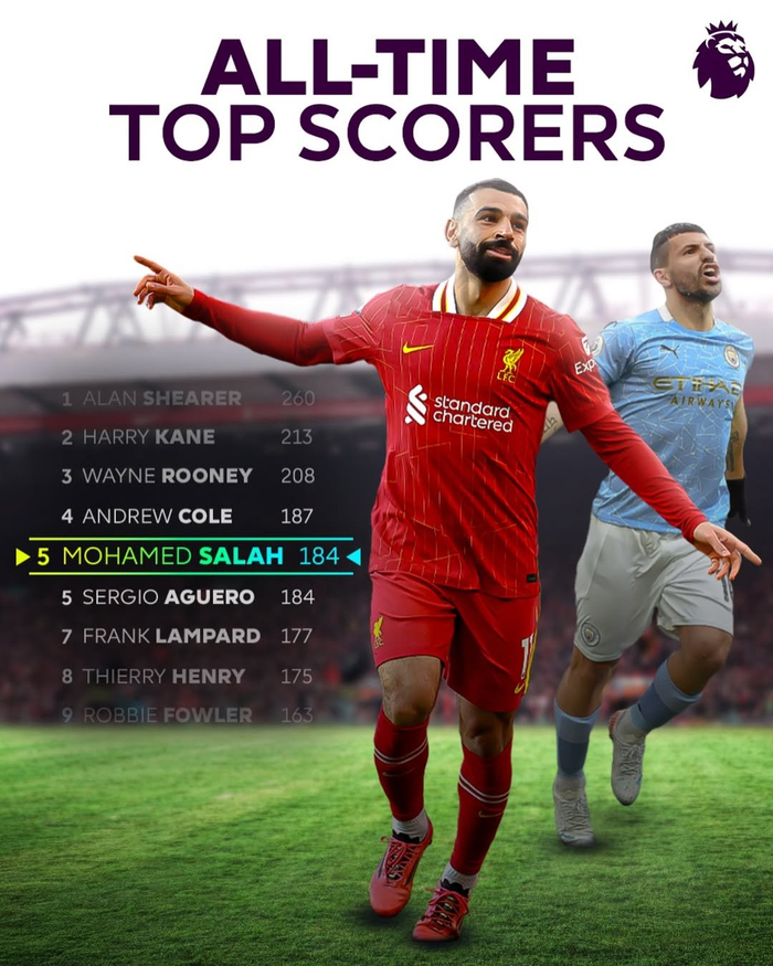 5、=萨拉赫(现役 利物浦):184球