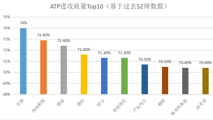 基于以上三大类指标,ATP列出了过去52周进攻质量Top10榜单,如下图所示。