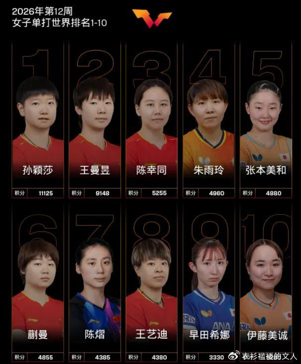 根据最新的世界排名,陈熠的积分为4385,排名第7;王艺迪的积分为4380,排名第8。而且,排在陈熠前面的球员是孙颖莎、王曼昱、陈幸同、朱雨玲、张本美和、蒯曼,这几名球员全部获得了澳门世界杯的参赛资格。据悉,王艺迪这一次能参赛,靠的就是世界排名。如果按照这样的情况来看,陈熠落选的确有点出人意料。