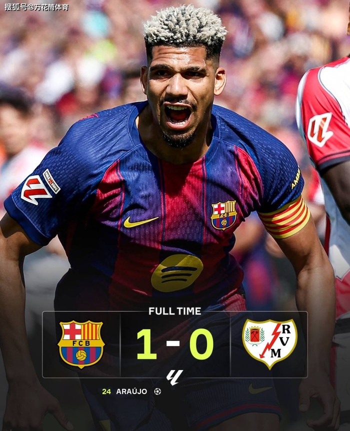 仅仅4分钟后,巴萨用进球平复了场内的不满情绪。坎塞洛开出角球精准制导,阿劳霍高高跃起头槌攻门,皮球击中立柱内侧弹入球门,巴萨1-0打破僵局。这位乌拉圭中卫再次在关键时刻站出来,打入了全场唯一进球。