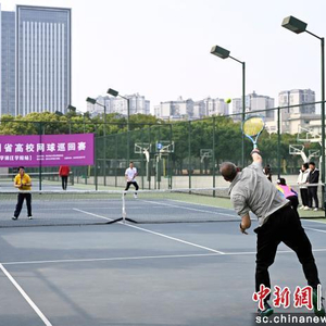 中新网四川新闻3月23日电(冯耀丹 姜智旭)近日,2026年四川省高校网球巡回赛在四川大学锦江学院开赛。来自四川大学、西南交通大学等四川省24所高校的网球健儿齐聚一堂,以球会友、挥拍竞技,共赴一场春日里的体育盛宴。