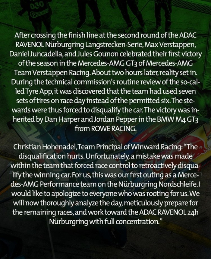 不过这个冠军奖杯拿在手里还没捂热乎呢,NLS2官方发布声明,取消了维斯塔潘车组的冠军成绩,整个周末算是白忙活了。