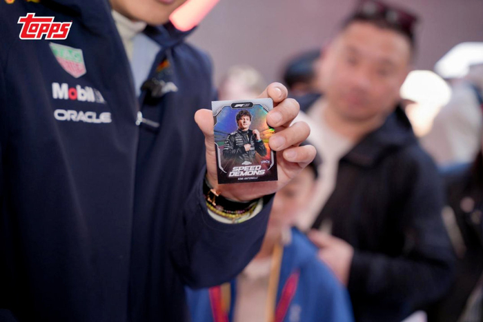 本站的排位赛中,年仅19岁201天的梅赛德斯车手安东内利拿下杆位,成为F1历史上最年轻的杆位得主。而在Topps的展位上,一张来自F1王朝系列、全球限量仅5张的安东内利签名物料卡,就吸引了大量车迷驻足。
