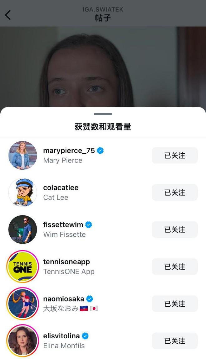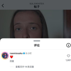 此事发生之后,日本网球运动员大坂直美在斯瓦泰克的社媒中留下一颗❤(点赞),她的前教练、斯瓦泰克的现教练费赛特也点了赞。