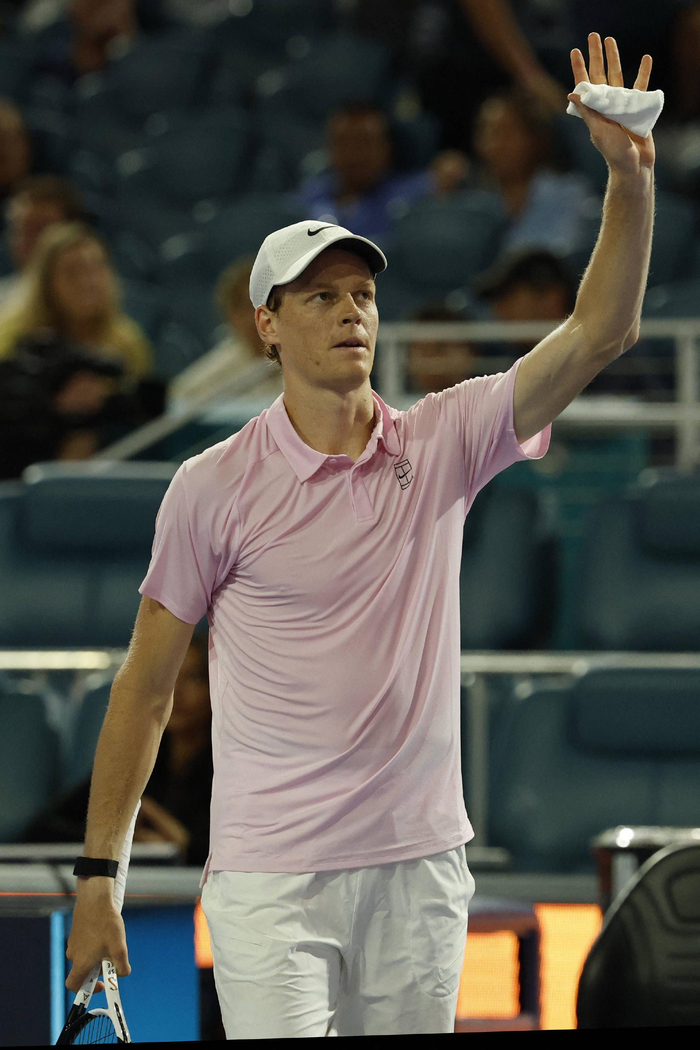 3月23日,辛纳在赛后向观众致意。 新华社/路透