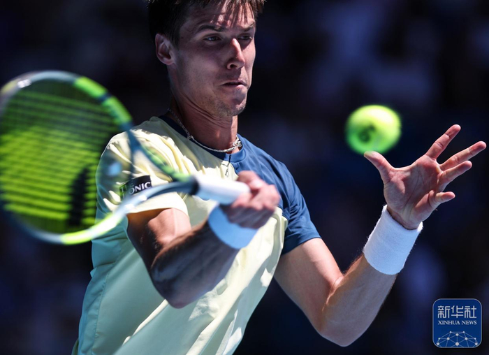 当地时间1月23日,在墨尔本进行的2026年澳大利亚网球公开赛男单第三轮比赛中,俄罗斯选手梅德韦杰夫3比2战胜匈牙利选手毛罗然,晋级下一轮。