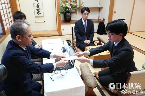 此时首日封盘时间到,芝野虎丸将下一手(总第97手)封存,交给立会人山城宏。首日用时,黑棋芝野虎丸3小时50分,白棋一力辽4小时10分。