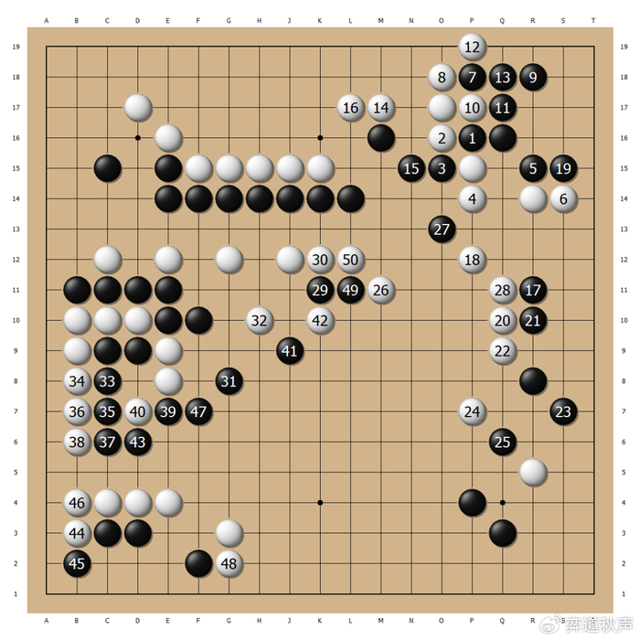 白48挡下当然是巨大的一手,角上黑棋不活。