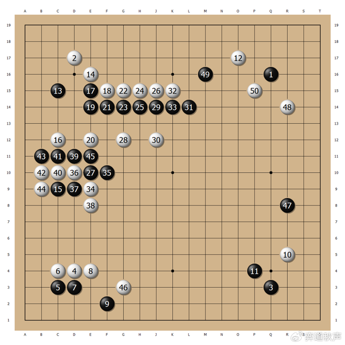 面对棋圣宝座的巨大诱惑,虎丸表现得极为谨慎,黑35、39是安全运转的下法。