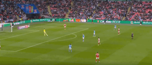 不久之前的联赛杯决赛,就特别明显。阿森纳想要曼城压出来,可是曼城就保持在阿森纳后卫线、中场线之间的站位,绝对不去逼抢阿森纳的门将、后卫,一度造成阿森纳门将凯帕在禁区内长时间的控球,这种比赛场面极度尴尬。原因很简单,曼城就是等阿森纳长传球,再利用自己的人数优势拿下球权,从而转换进攻。