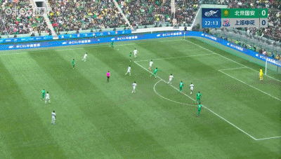 下半场,申花率先创造机会,陈晋一接应高天意角球,近距离头球顶偏。