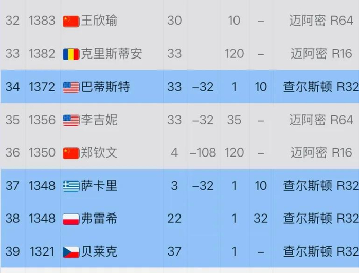 导致郑钦文在迈阿密赛事结束后迅速被王欣瑜取代,源于她没报名参加查尔斯顿500赛。去年她在这站赛事打进了八强,在被扣除108个积分后,才让她的排名急剧下滑,给了瑜美人重新上位的机会。