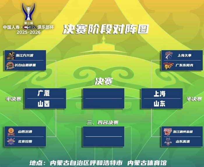 CBA杯四强出炉半决赛对阵:上海对阵山东广厦对阵山西广东出局
