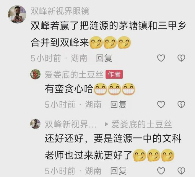本以为这已经够狠了,没想到双峰网友的回怼,更是招招戳中“命门”。有网友直接放话:要是双峰赢了,就把茅塘镇划到涟源!还有更狠的:涟源要是输了,把三一搬到双峰开发区来!这话一出来,懂行的娄底人直接笑喷了。