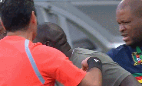 今天这场比赛,拜合拉木下半场才上,第58分钟通过一次拼抢断球,引发了喀麦隆集体抗议,主帅被直接红牌罚上看台,还有1名球员也因为抗议吃到黄牌。