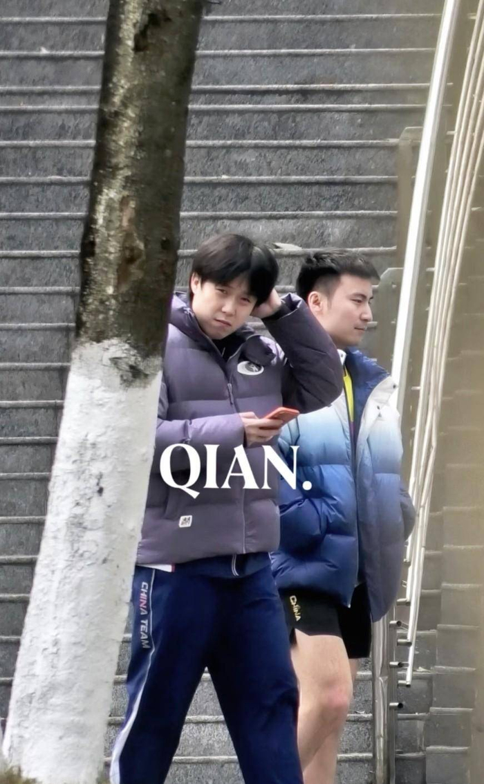 看起来成都的天气还是有点凉,王楚钦一直穿着羽绒服。今天他和体能教练一起走,应该是要去练体能了。对运动员来说,体能训练可是日常训练中非常重要的一环。两人边走边聊,这个体能教练跟着楚钦好多年了,关系特别好,平时也挺有默契的。