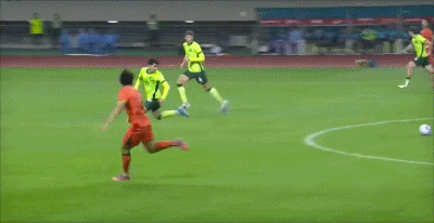 第42分钟,中国队获得外围中路任意球,杨杨主罚左脚直接攻门,皮球擦着右侧立柱出了底线。