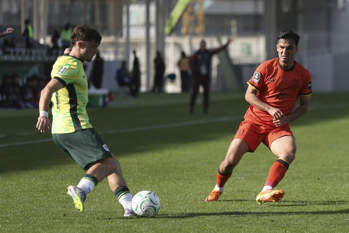 新华社照片,利雅得,2026年1月11日 1月11日,中国队球员木塔力甫·依明卡日(右)在比赛中。 当日,在沙特阿拉伯利雅得举行的2026年亚足联U23男足亚洲杯D组小组赛中,中国队1比0战胜澳大利亚队。 新华社发(谭蔡民摄)