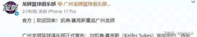 广州男篮此番召回赛克斯,核心考量是球队冲刺阶段的即战力需求。他拥有成熟的CBA征战经验,不用花费时间适应联赛风格和判罚尺度,完成注册后就能直接融入战术体系,这对分秒必争的季后赛卡位战来说至关重要。赛克斯的职业足迹遍布全球,除CBA外,还在NBA发展联盟、韩国、土耳其及欧洲多国联赛效力,丰富的海外赛场经历,让他拥有极强的环境适应能力,也让球队教练组对他的回归充满信心。