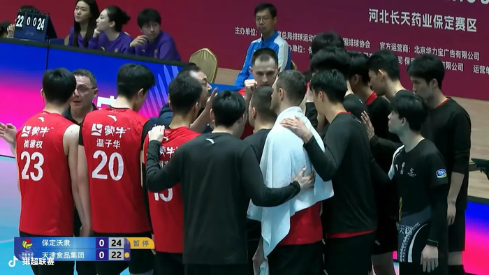 首局比赛便打得胶着,保定队凭借徐克首发领衔,开局打出4-1的领先优势,一路将优势保持到局末。24-20领先时保定队略显保守,天津队抓住机会连追3分缩小分差,关键时刻温子华2号位强势扣球拿下局点,保定队25-23先下一城。第二局保定队乘胜追击,开局5-2领先,狠抓发球与拦防,进攻端打得积极主动,天津队虽在后半段试图追分,却陷入自身节奏混乱,二换三战术调整过晚,登场后也未能扭转颓势,保定队25-18再胜一局,大比分2-0领先。