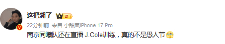 南京同曦队还在直播 J.Cole训练,真的不是愚人节
