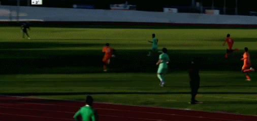 第35分钟,U16国足展开反击,刘凯源内切远射,球被门将没收。