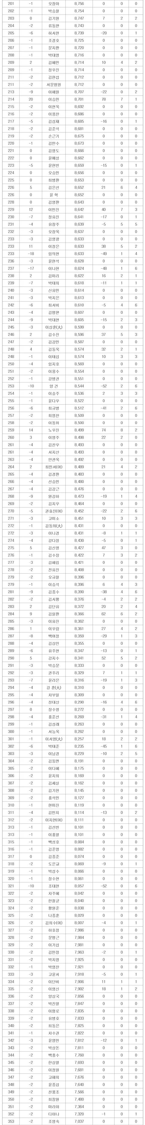 另一方面,金明训九段(3胜2负)、朴珉奎九段(4胜5负)、安成浚九段(2胜4负)排名有所下滑。在十强之外,崔宰荣八段(7胜)获得72分,排名上升8位至第11位。这是其个人最高排名。