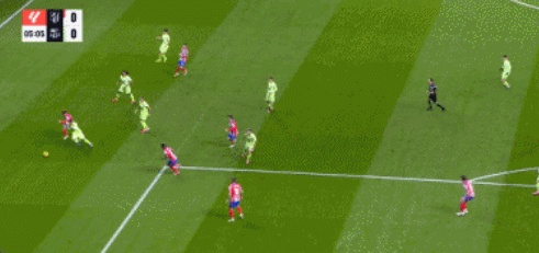 第51分钟,阿尔瓦雷斯主罚角球直接攻门,皮球击中横梁弹出了底线,持续给巴萨的后防线造成威胁。