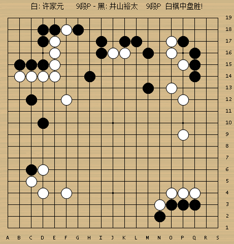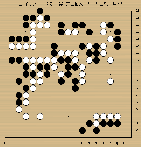 黑棋左上角被搜刮得惨不忍睹,井山不再坚持,于白90时投子。