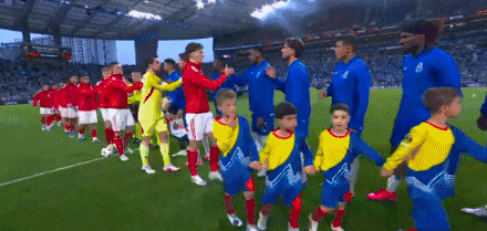 双方球员步入赛场,比赛开始。