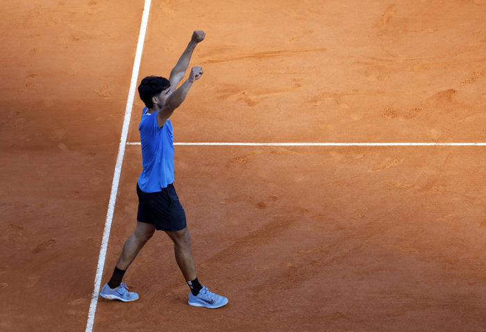 4月9日,阿尔卡拉斯庆祝胜利。 新华社/欧新
