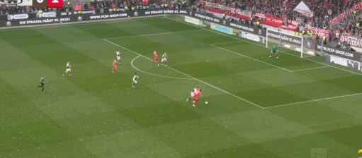 北京时间4月12日德国足球顶级联赛 联赛 第29轮,圣保利主场对阵拜仁慕尼黑。上半场默尔传球,穆西亚拉头球破门,之后穆西亚拉禁区内调整后射门,球击中门框弹出。半场战罢,场上比分圣保利 0-1 拜仁。