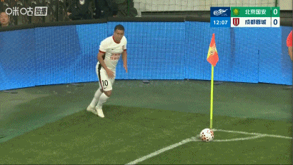 第13分钟,罗慕洛开出角球,皮球击中球网