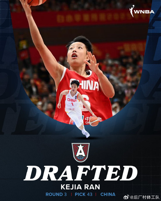 选秀详情:亚特兰大梦想队在2026年WNBA选秀第三轮(总第43顺位)选中冉珂嘉。她身高1.81米(部分国际赛事记录为1.75米),司职得分后卫/小前锋,效力于WCBA四川女篮。