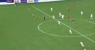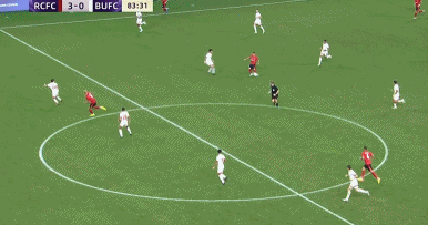 第83分钟,罗慕洛中场妙传,费利佩突入禁区晃过后卫左脚斜射破门,3比0!