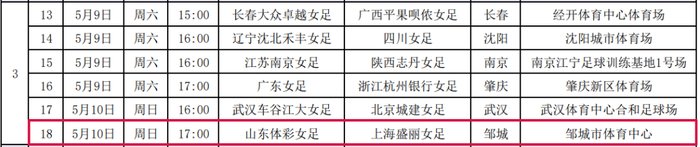 2026年中国足球女子超级联赛赛程表