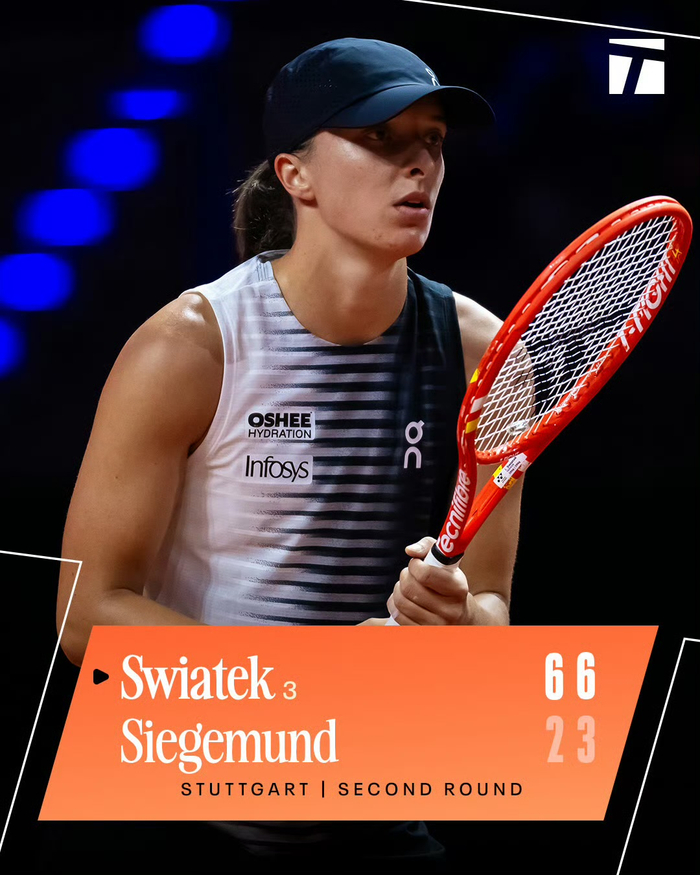 北京时间4月16日凌晨,WTA500斯图加特站第二轮,一场两位前赛会冠军之间的对决,以3号种子斯瓦泰克的胜利告终。波兰球后以6-2、6-3直落两盘击败德国老将西格蒙德,顺利取得红土赛季的开门红。
