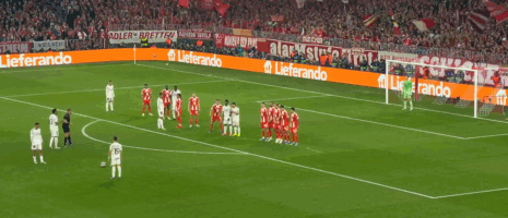 第29分钟,布拉欣-迪亚斯禁区前沿被放倒,皇马获得一个位置极佳的任意球,居莱尔直接打门,皮球划出弧线,飞进球门,皇马2-1拜仁,总比分3-3!